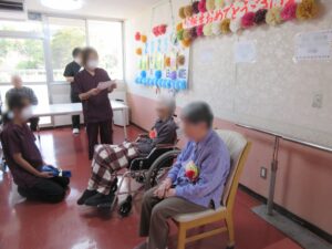 4月は4名の方が誕生月でした。 お誕生日おめでとうございます! 輪投げ大会を開催して、皆様笑顔で楽しまれていました。