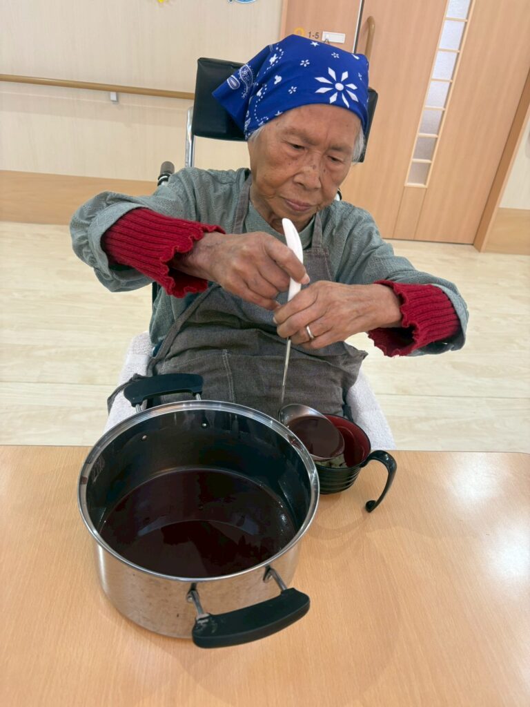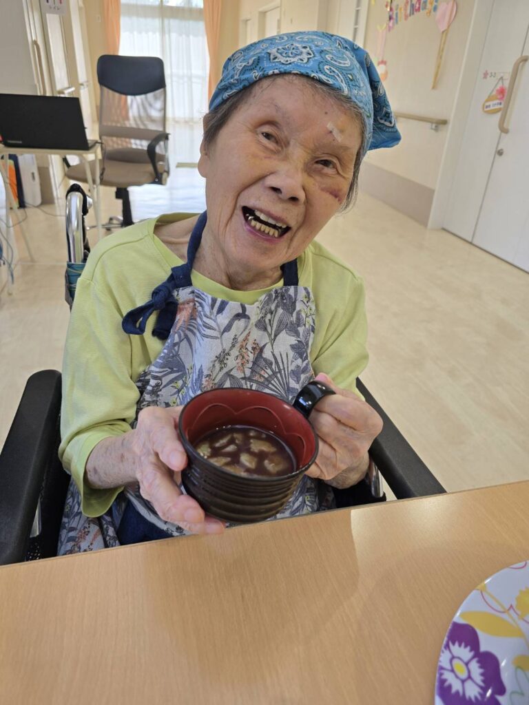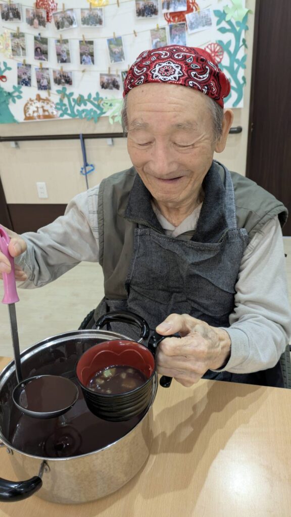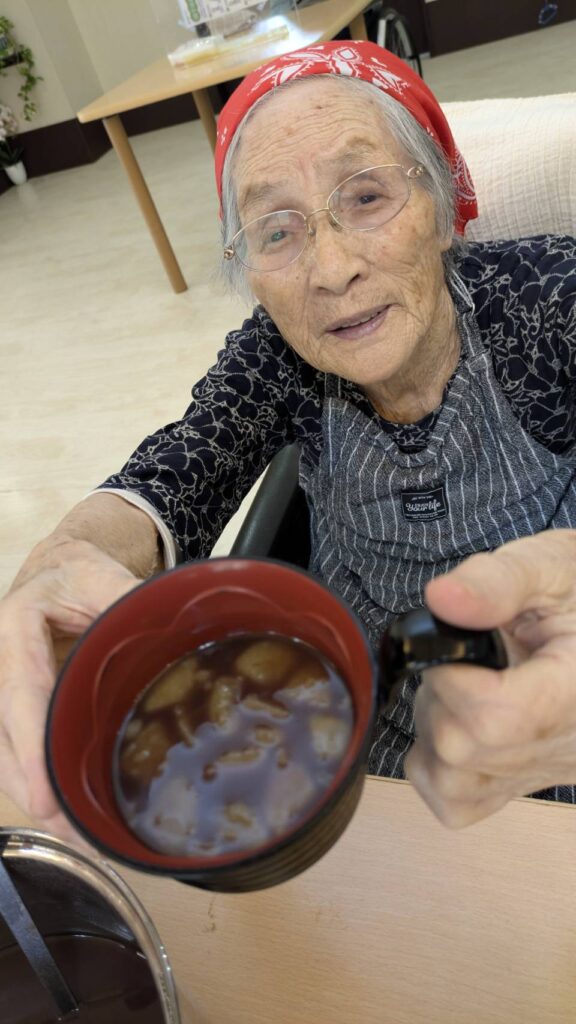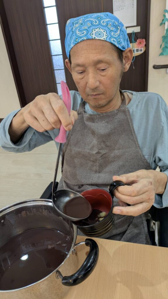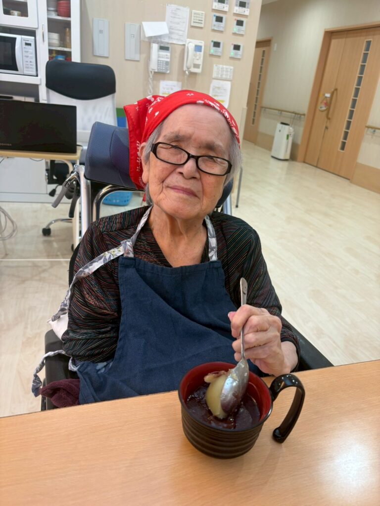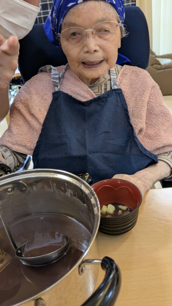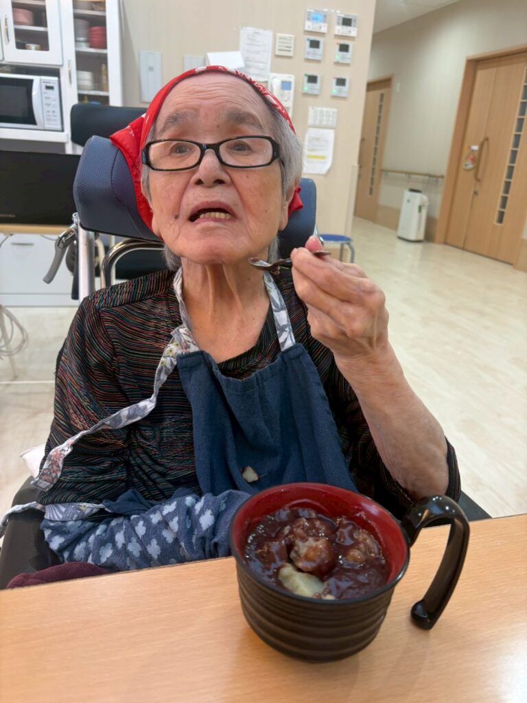 さつまいもぜんざい、ホクホクとろ~り、                             美味しくて沢山の方のほっぺが( ^ω^)・・・(10月15日)