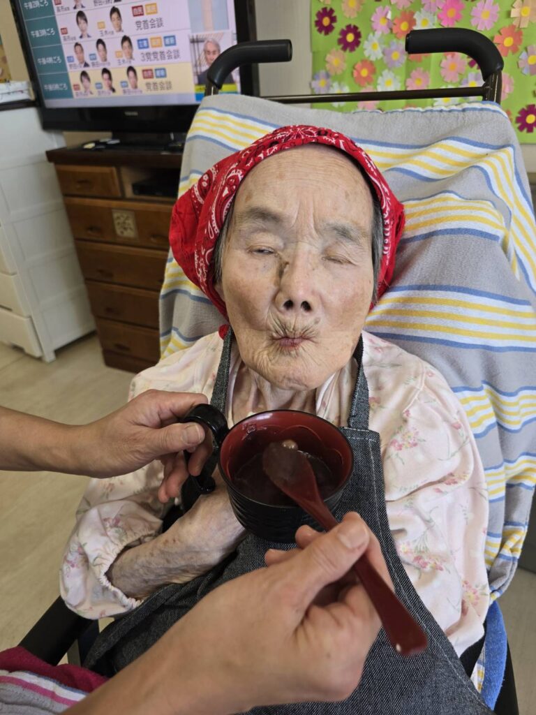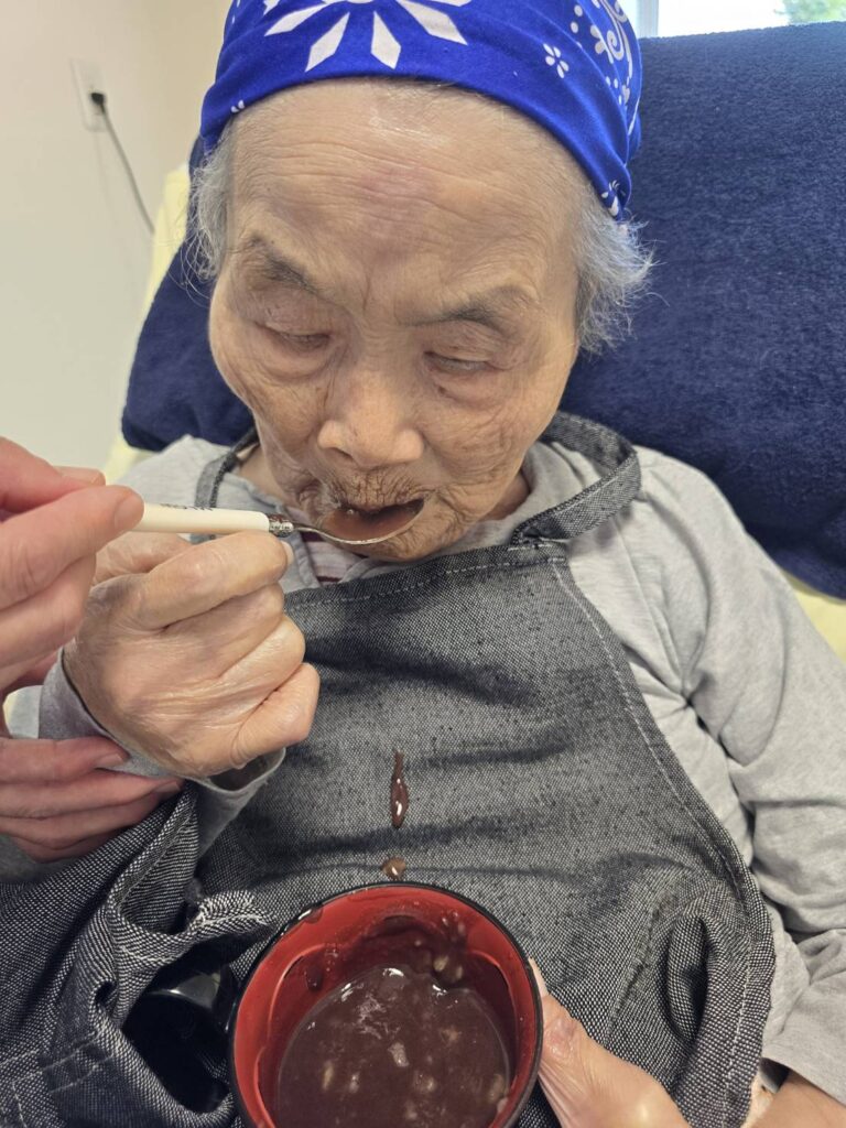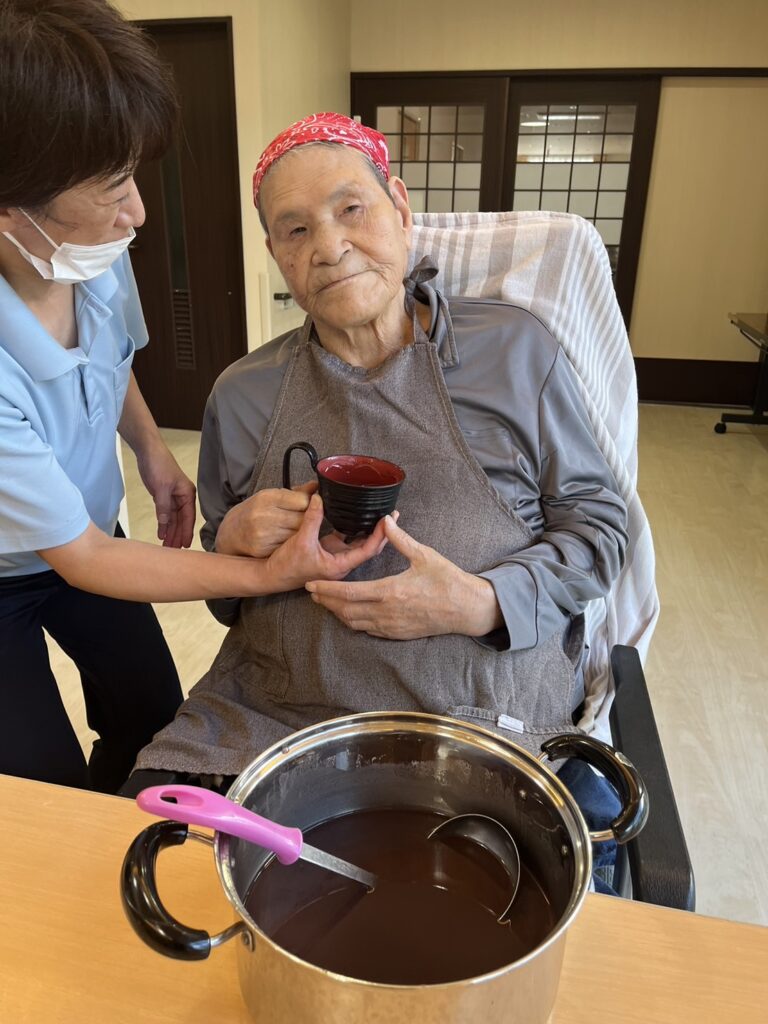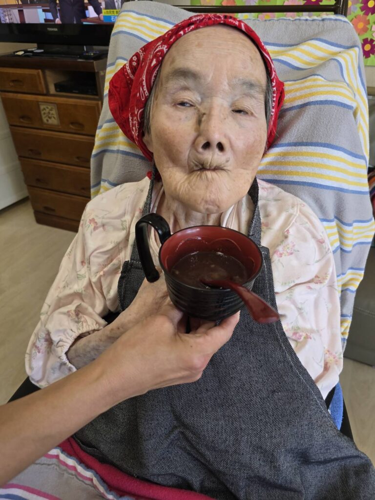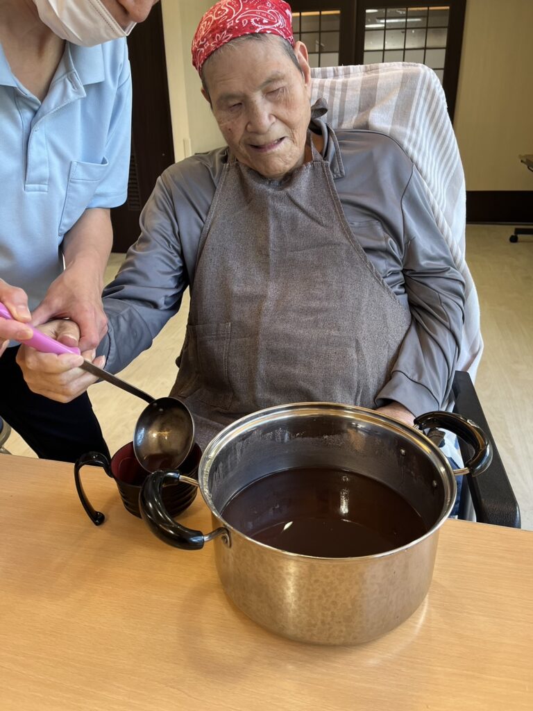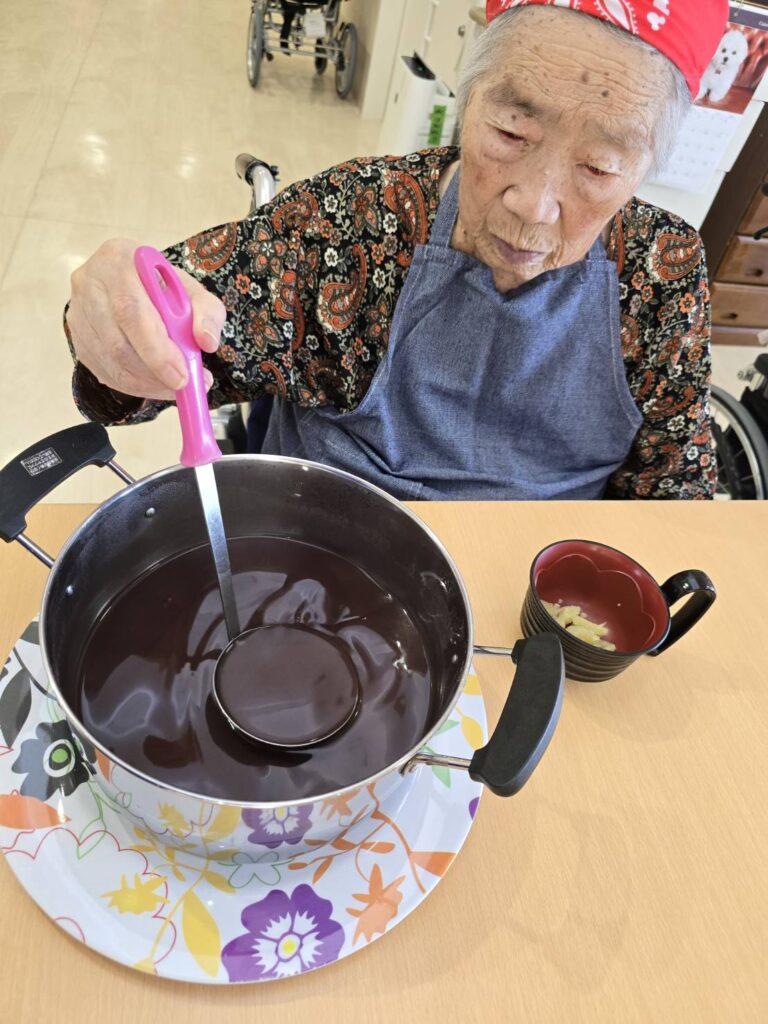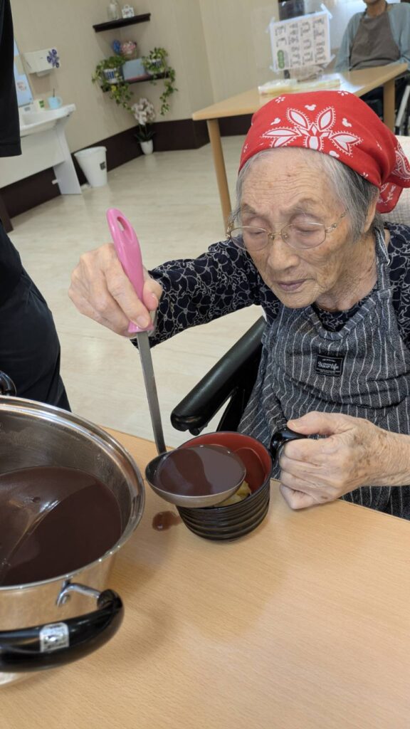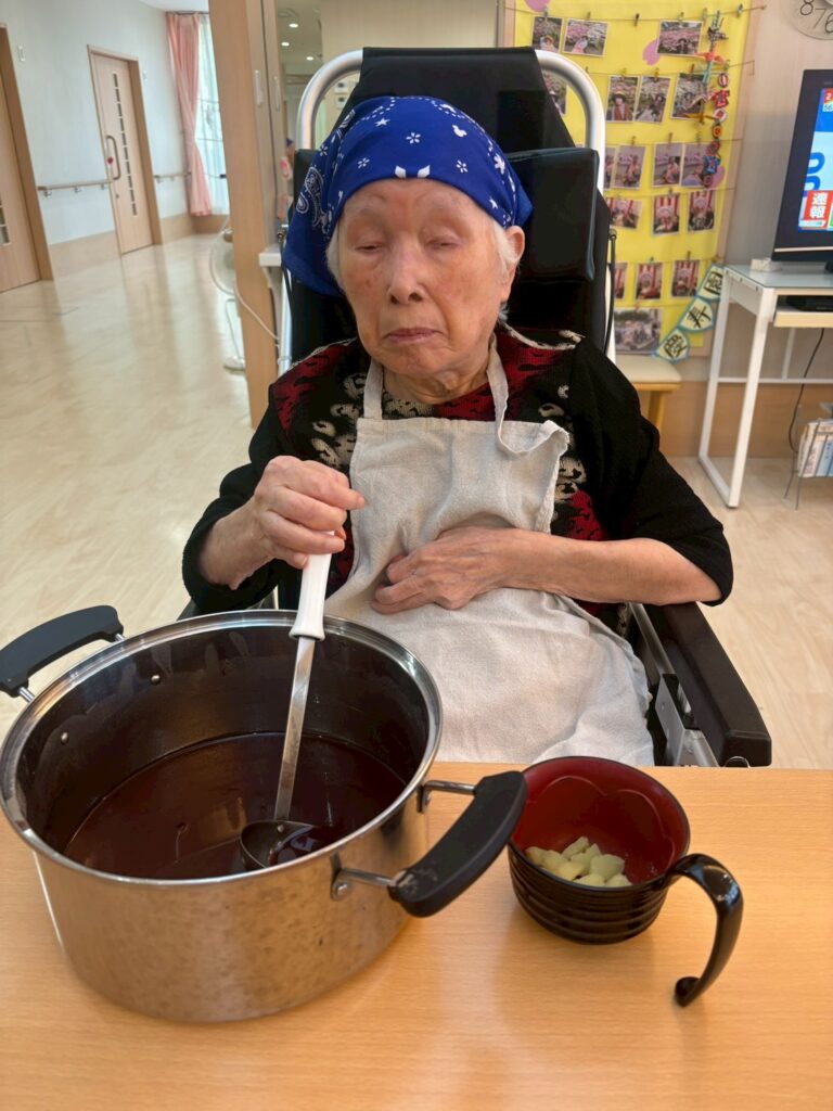 さつまいもぜんざい、ホクホクとろ~り、                             美味しくて沢山の方のほっぺが( ^ω^)・・・(10月15日)