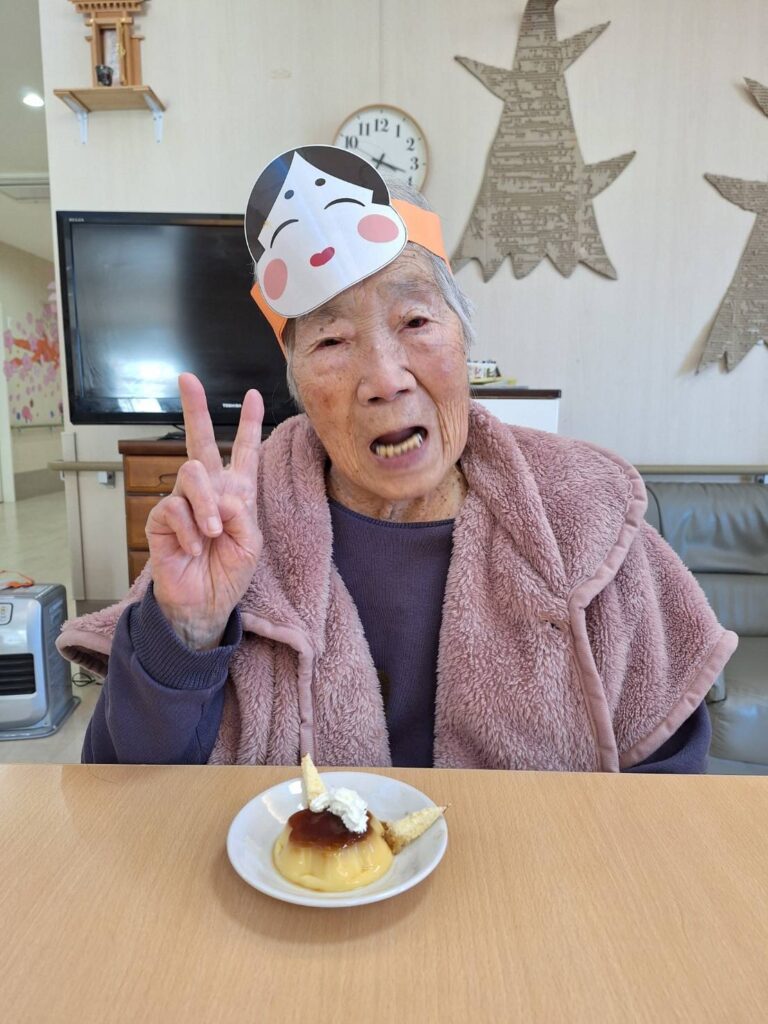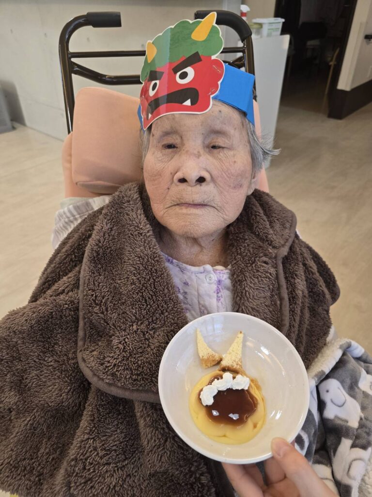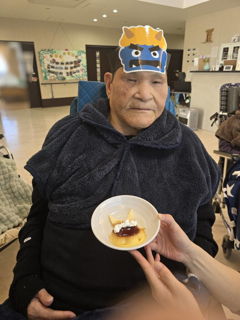 鬼風にデコレイトしたプリンを喰らい、退治しました。福は内!(2月3日)
